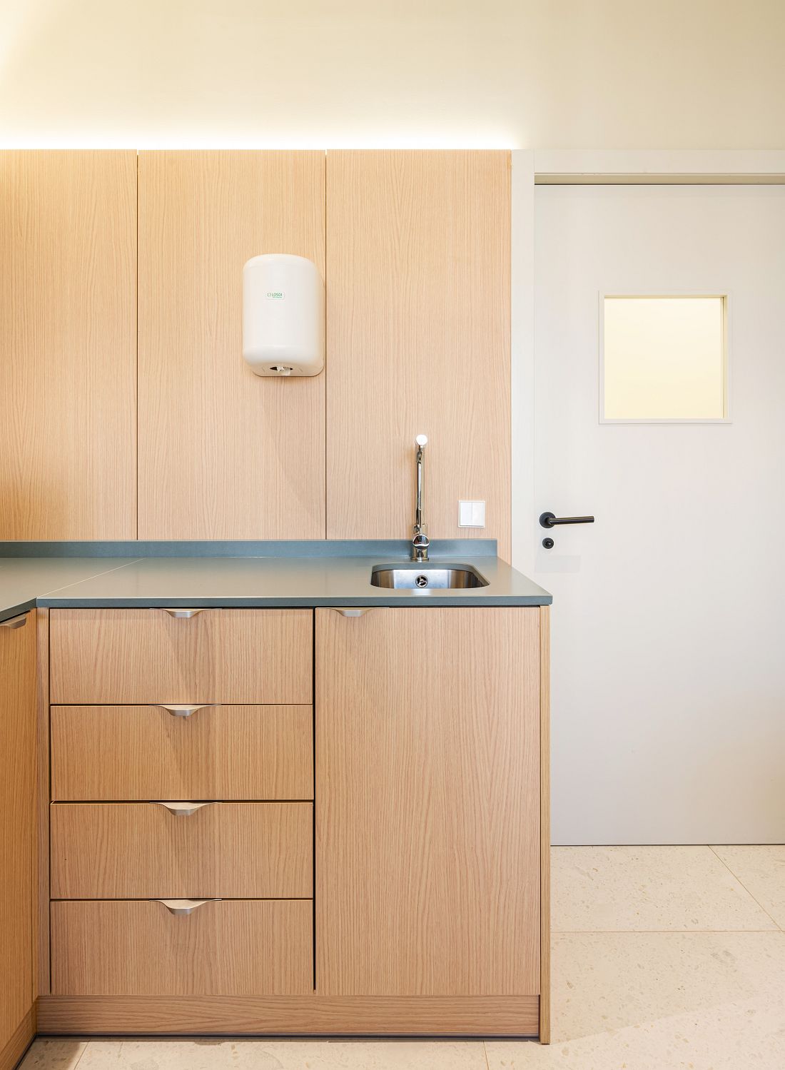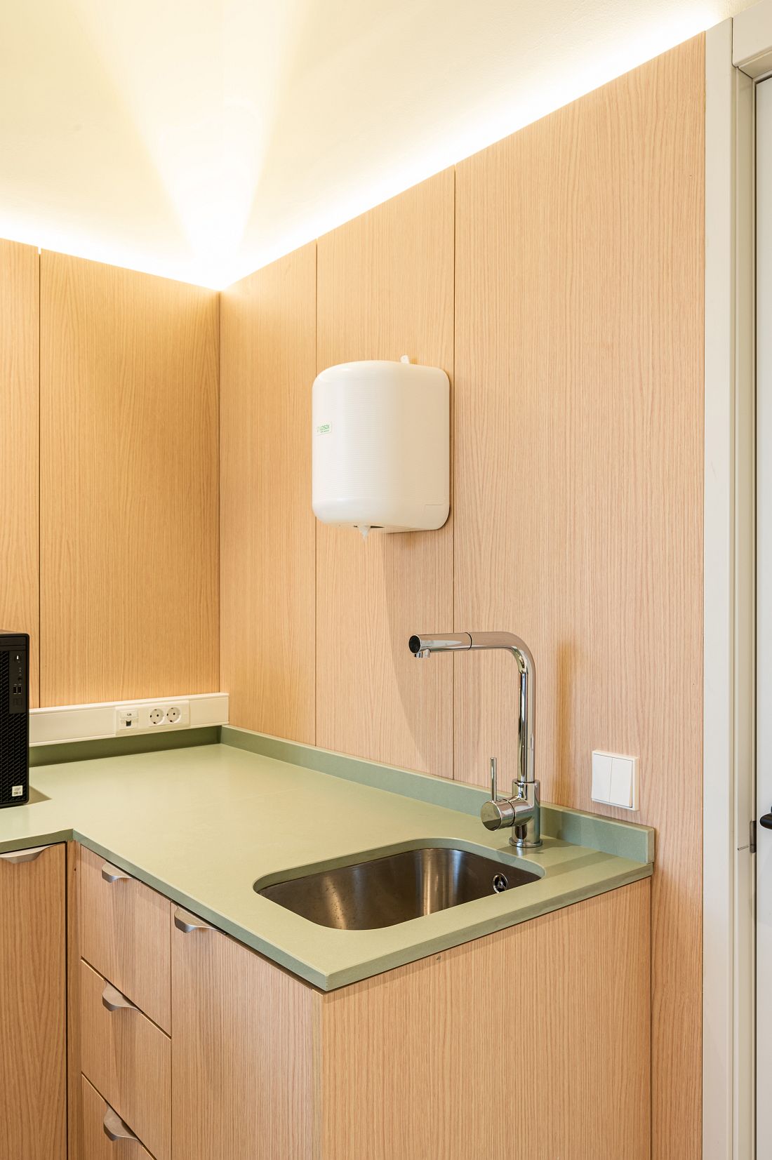 - Krion, un material innovador, antibacteriano y de gran durabilidad, perfecto para entornos sanitarios.