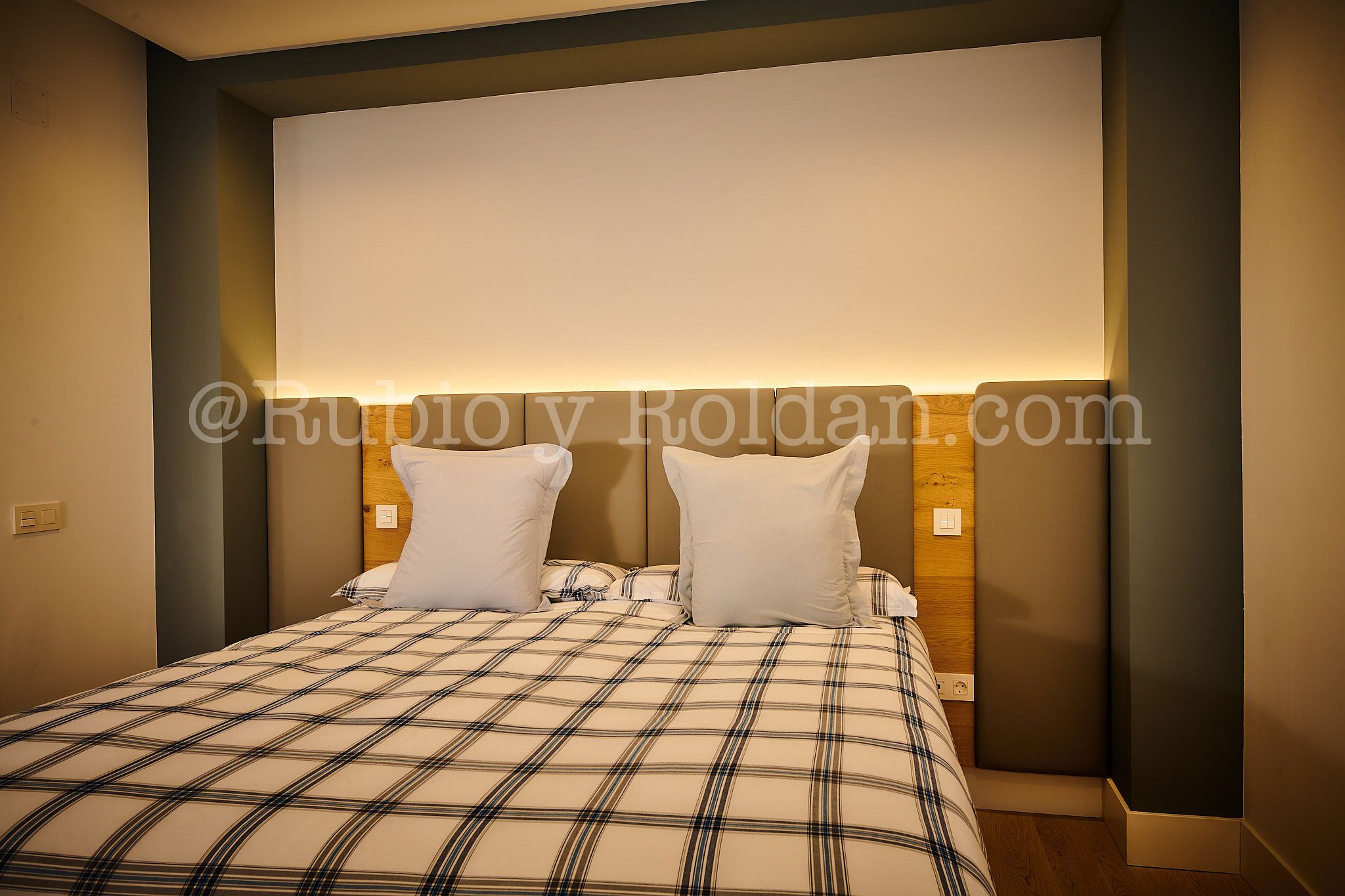 el ambiente de cada estancia. La iluminación LED resalta los detalles y texturas de la madera, creando un