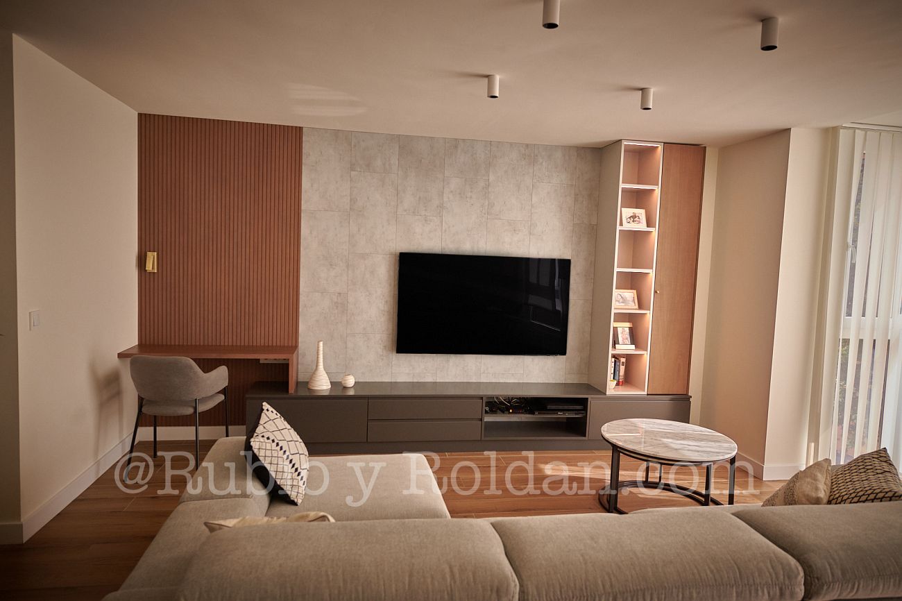 Este proyecto ha consistido en el diseño y fabricación de muebles auxiliares a medida, pensados desde cero según el estilo,