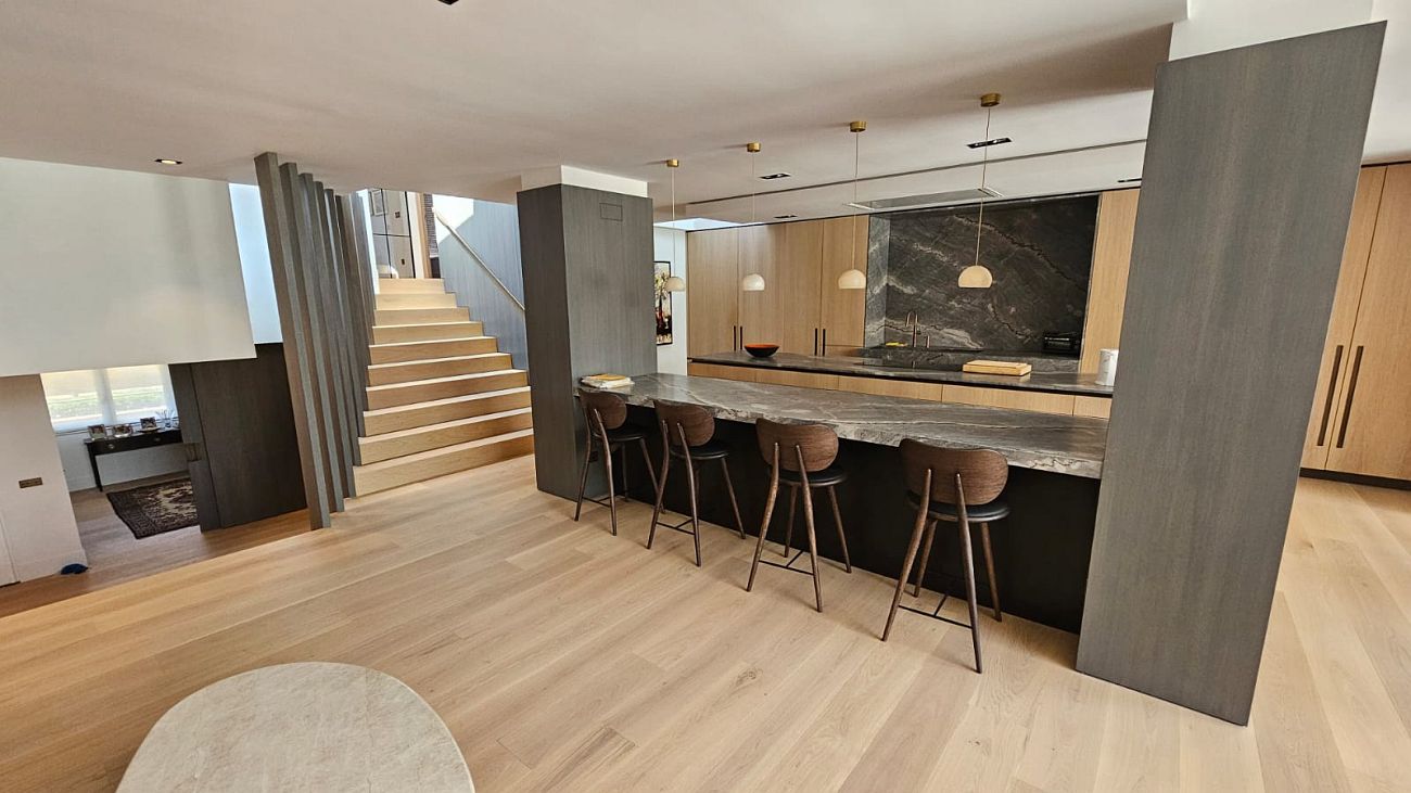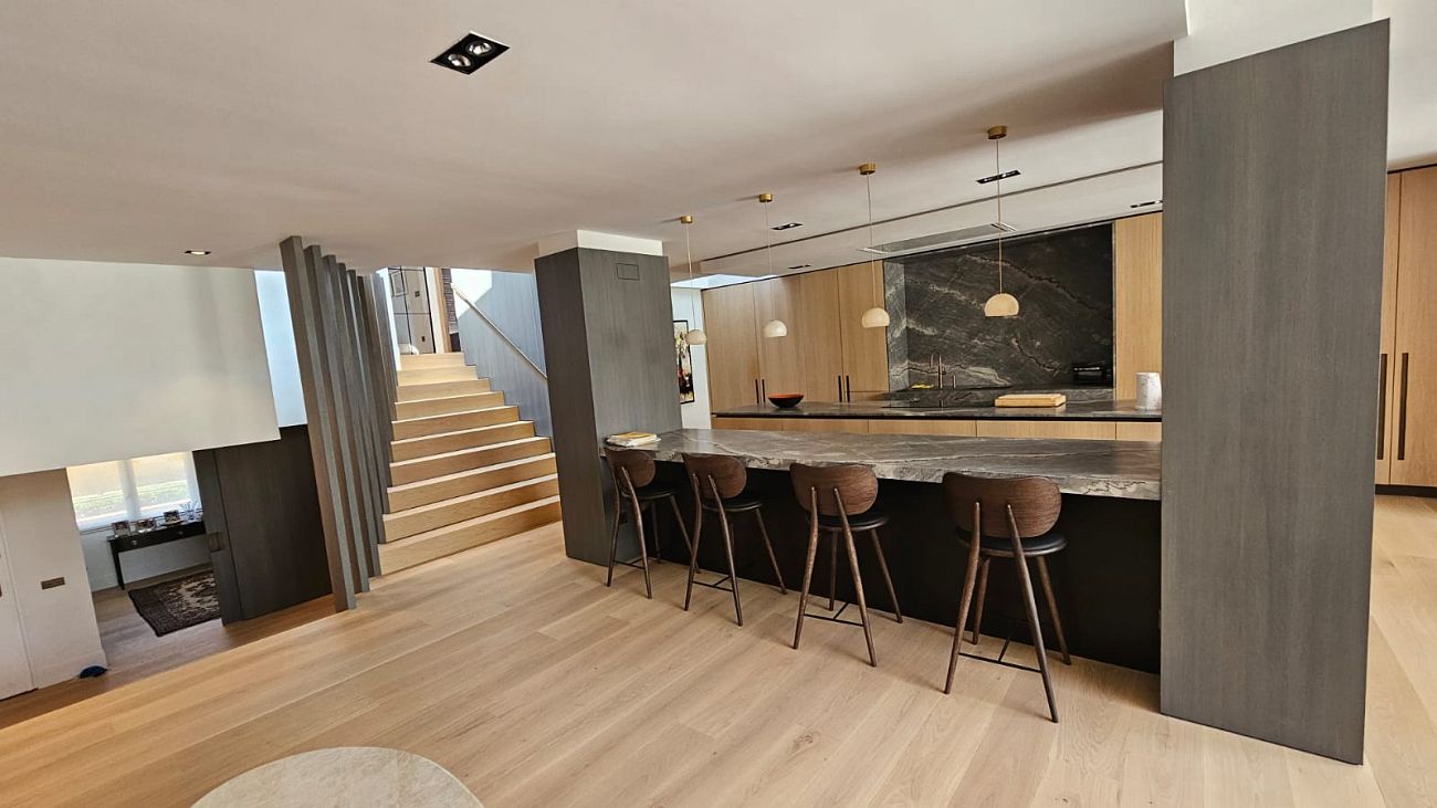 donde la carpintería personalizada y los panelados de madera de roble han sido protagonistas indiscutibles.