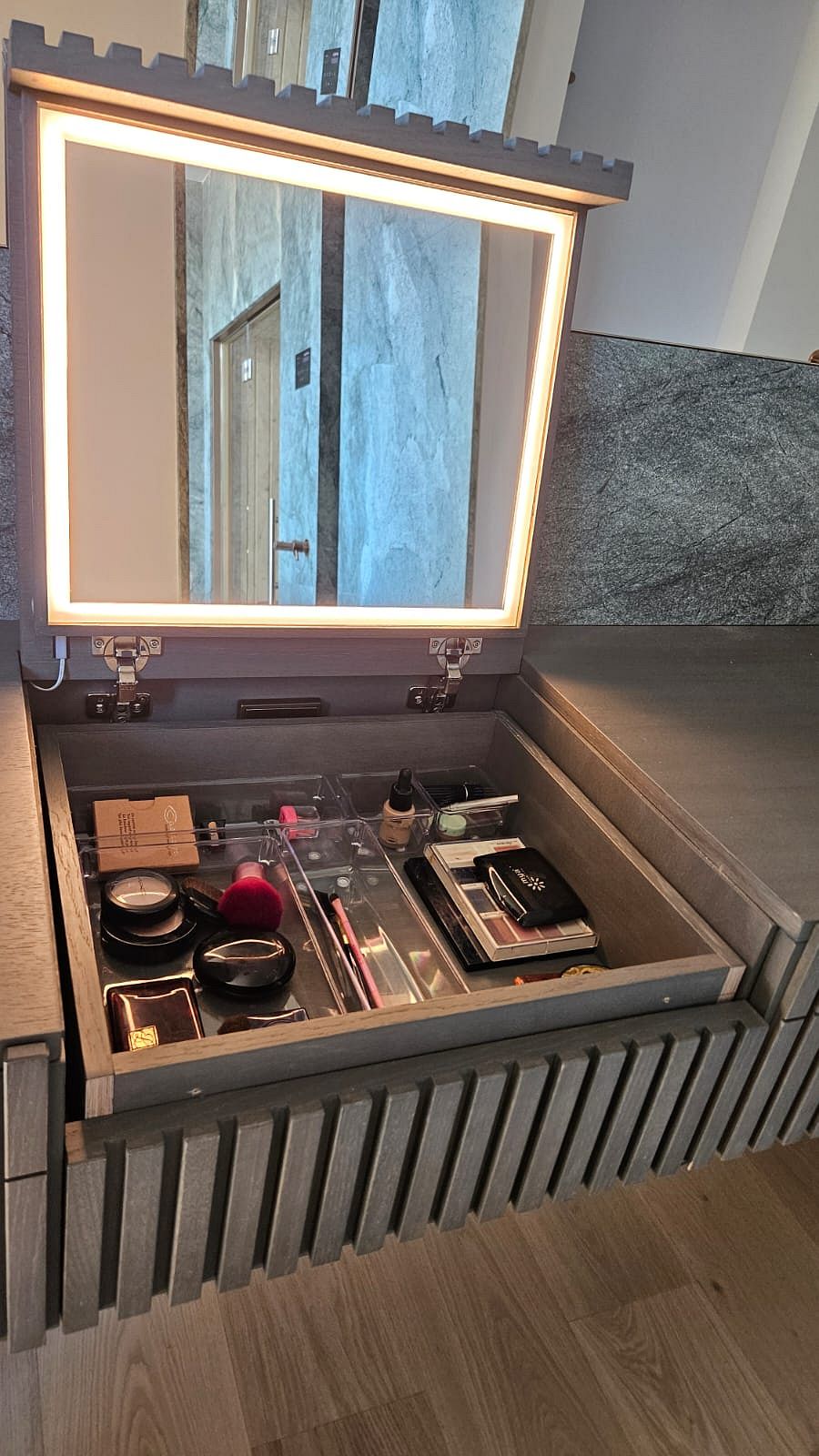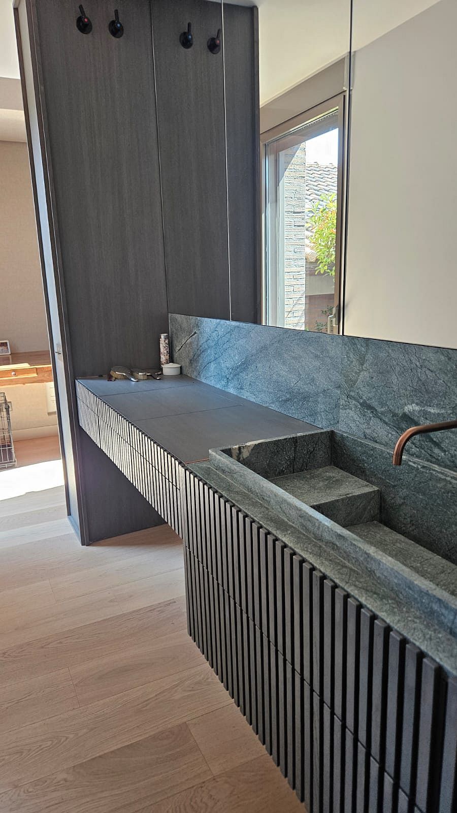 donde los grandes verticales en madera aportan presencia y calidez. Cada espacio fue concebido de manera personalizada,