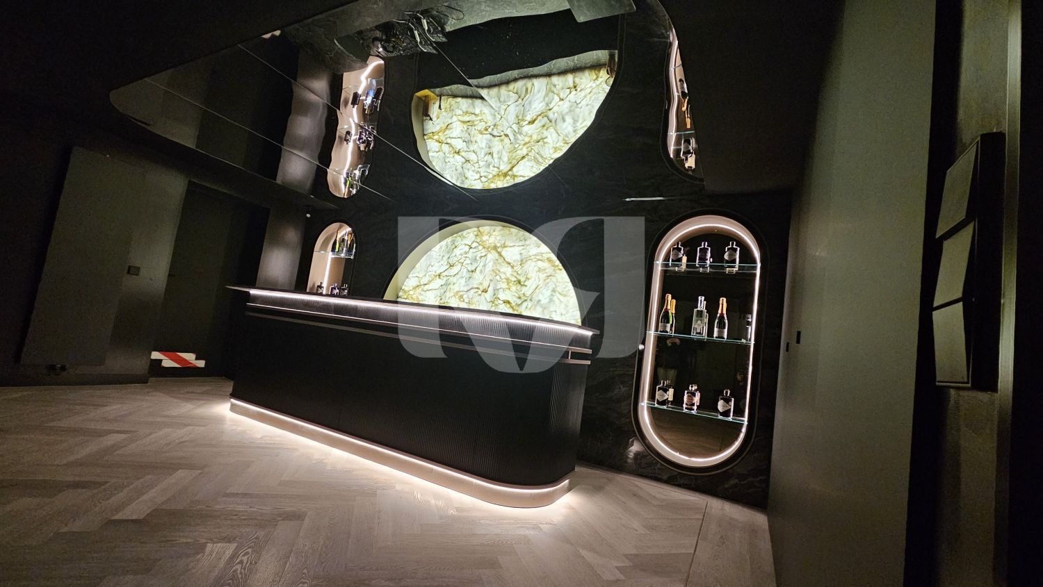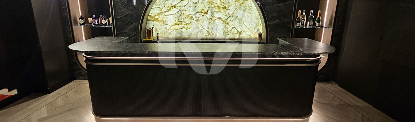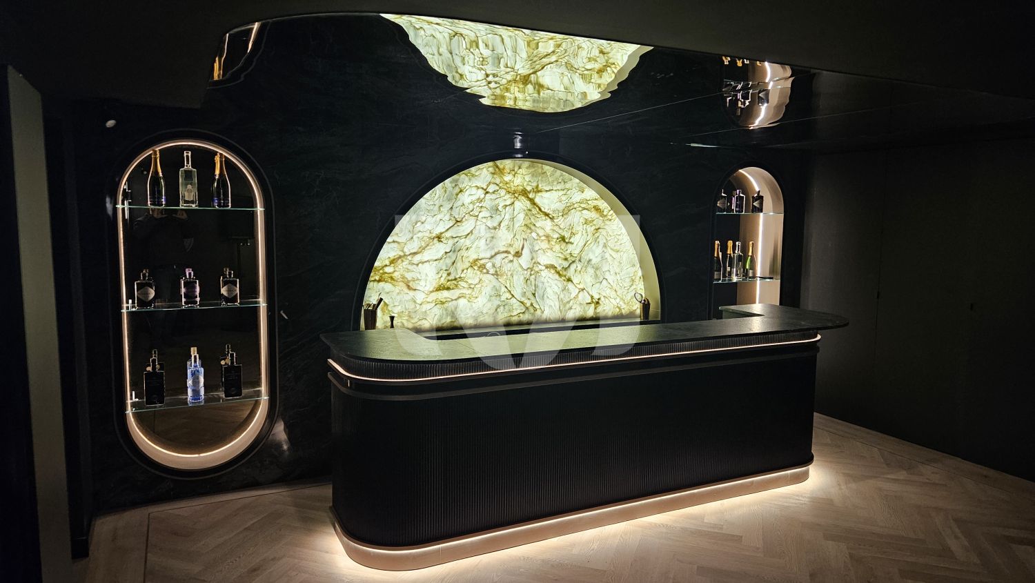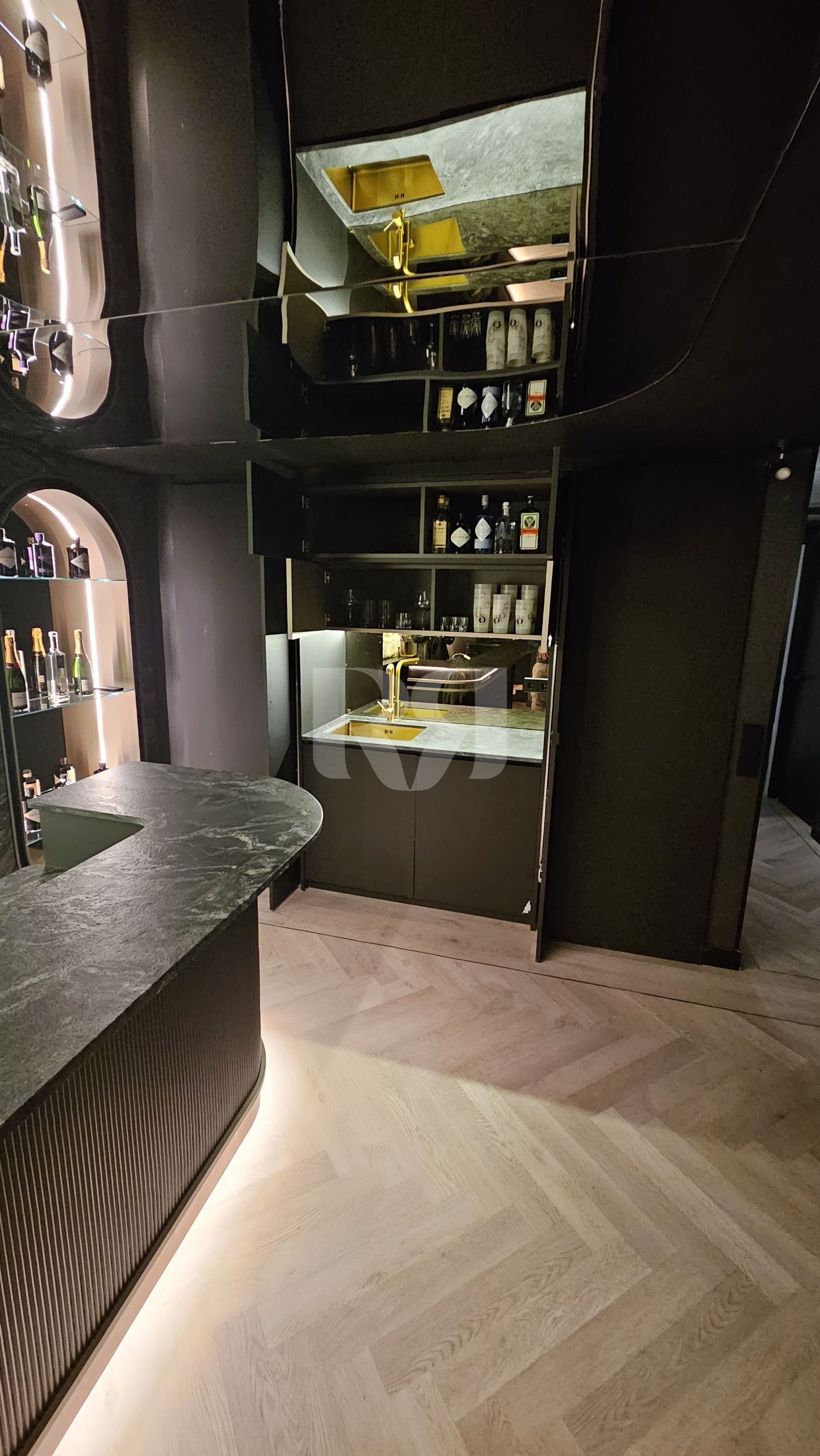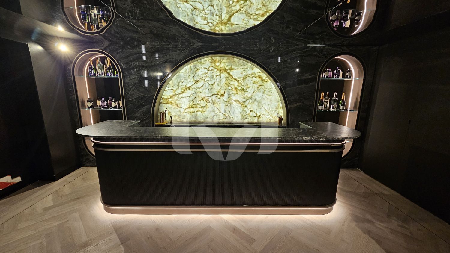 el pub privado, diseñado y ejecutado con un alto nivel de precisión y coherencia estética.