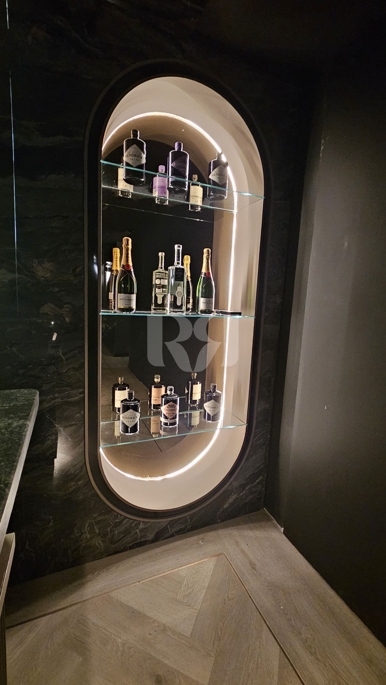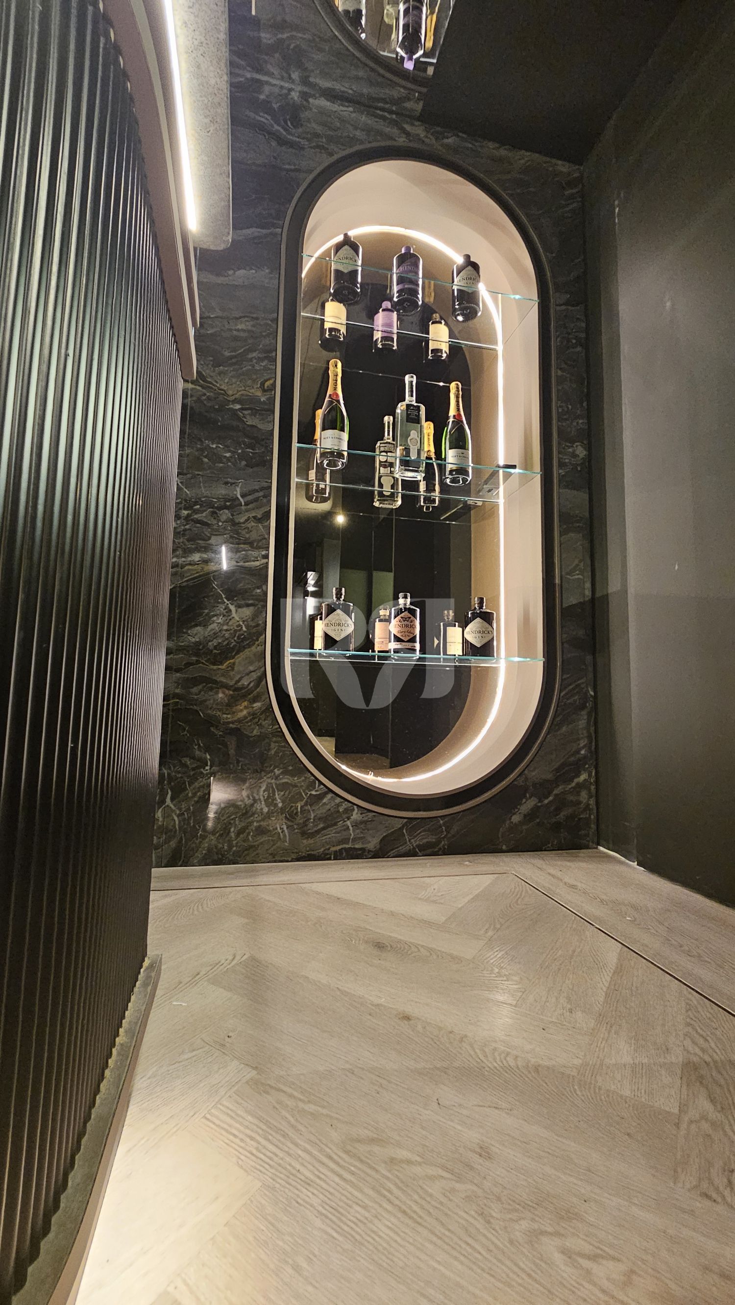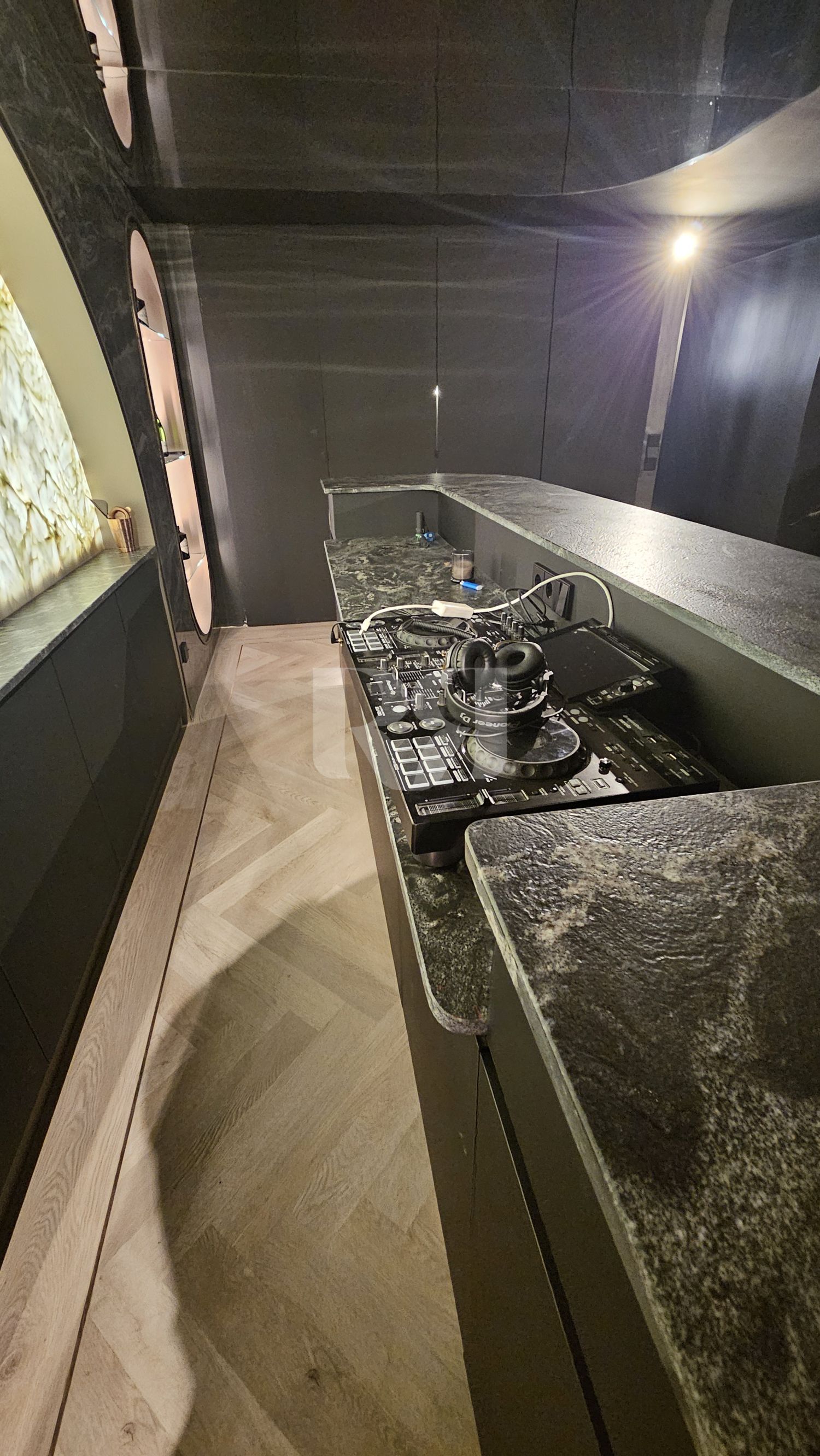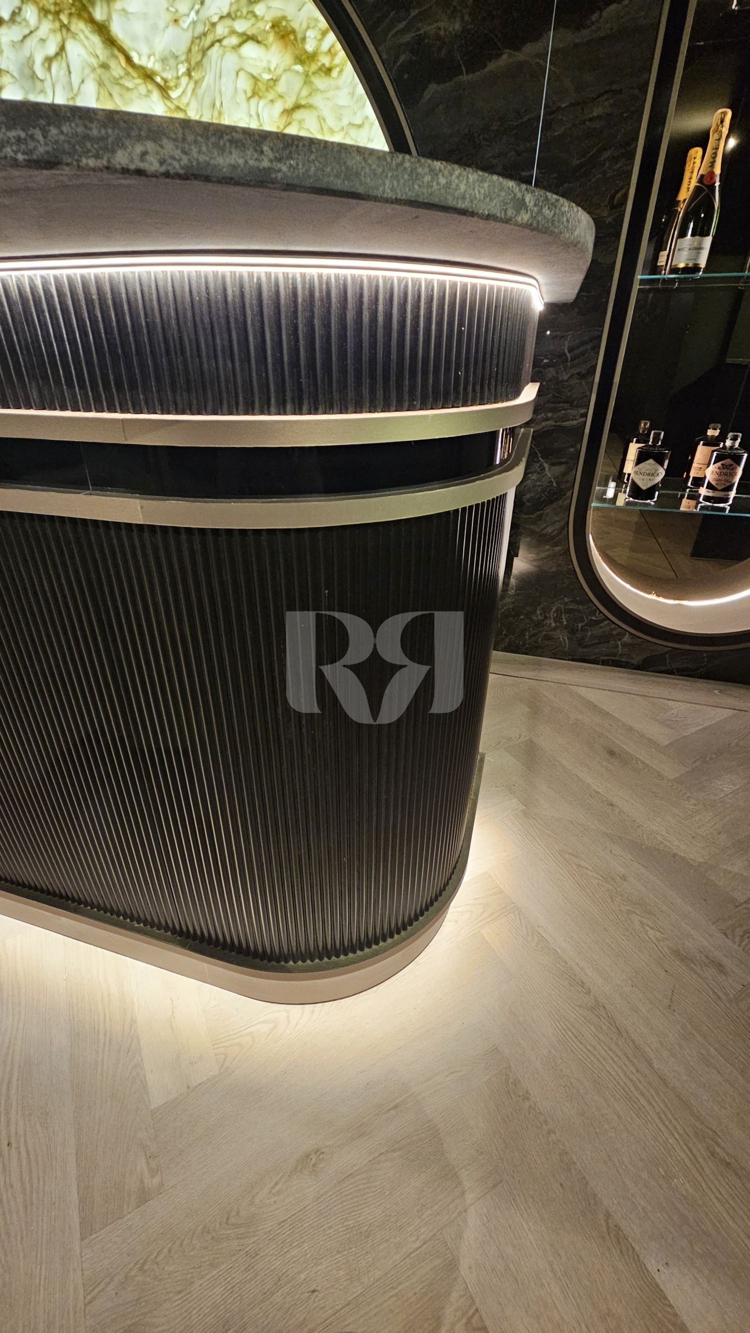 el pub privado, diseñado y ejecutado con un alto nivel de precisión y coherencia estética.