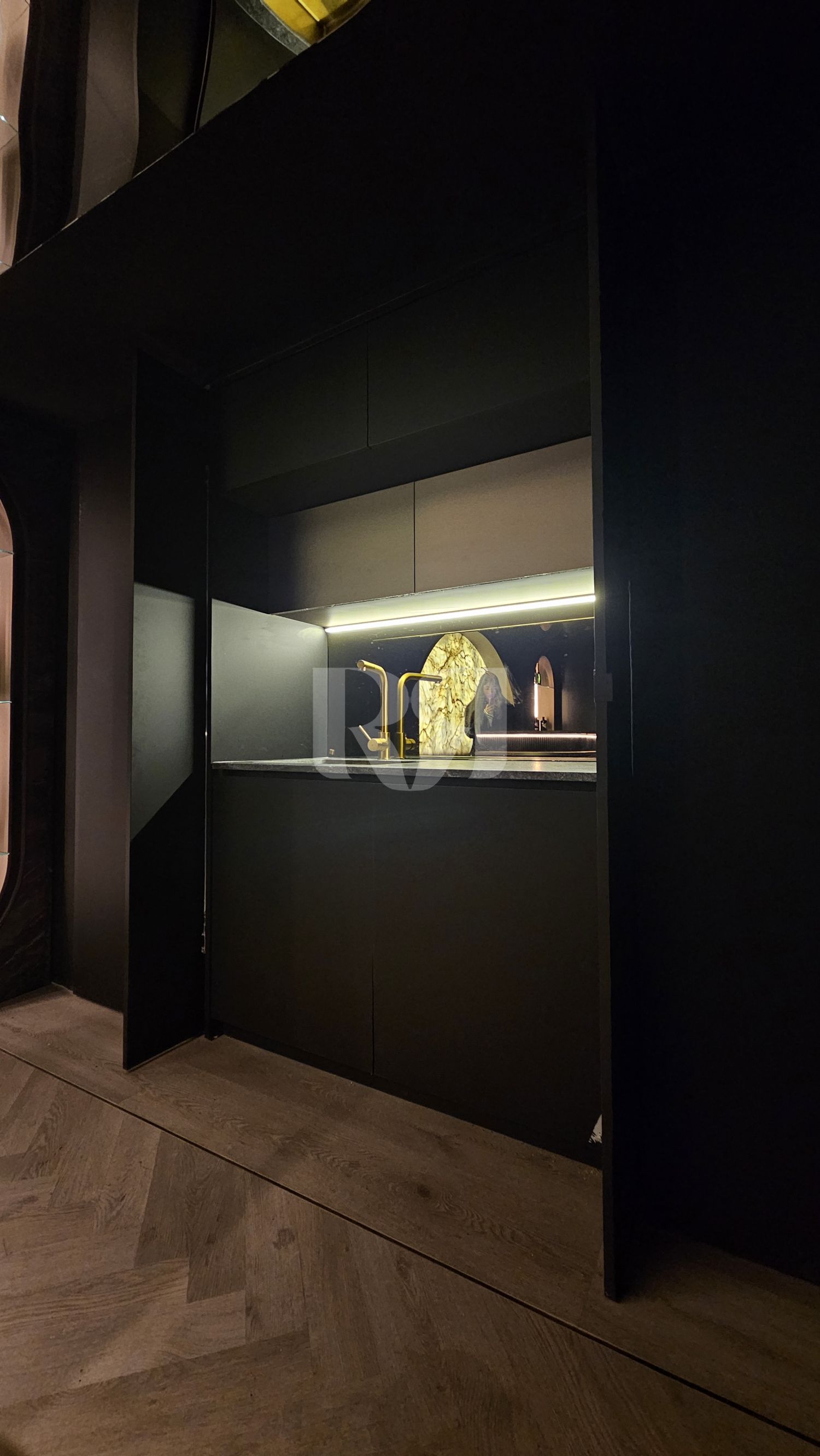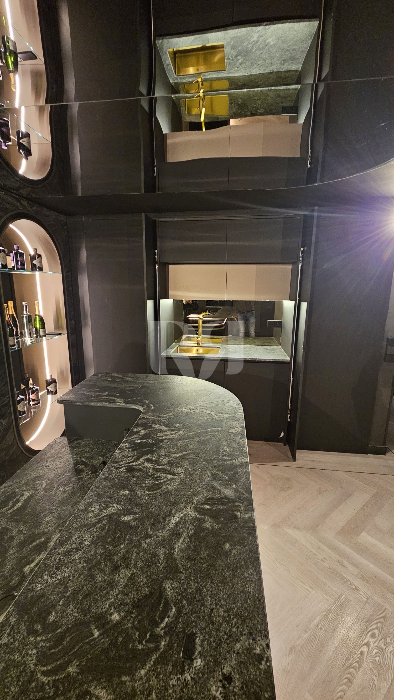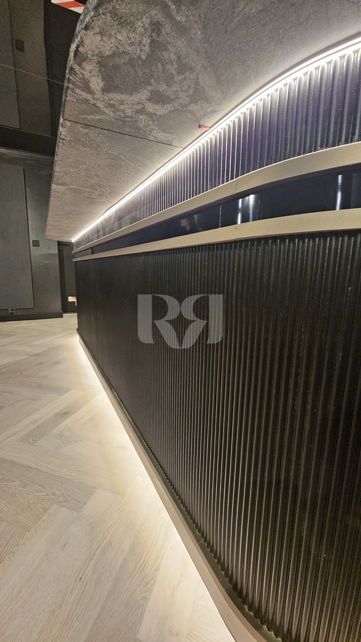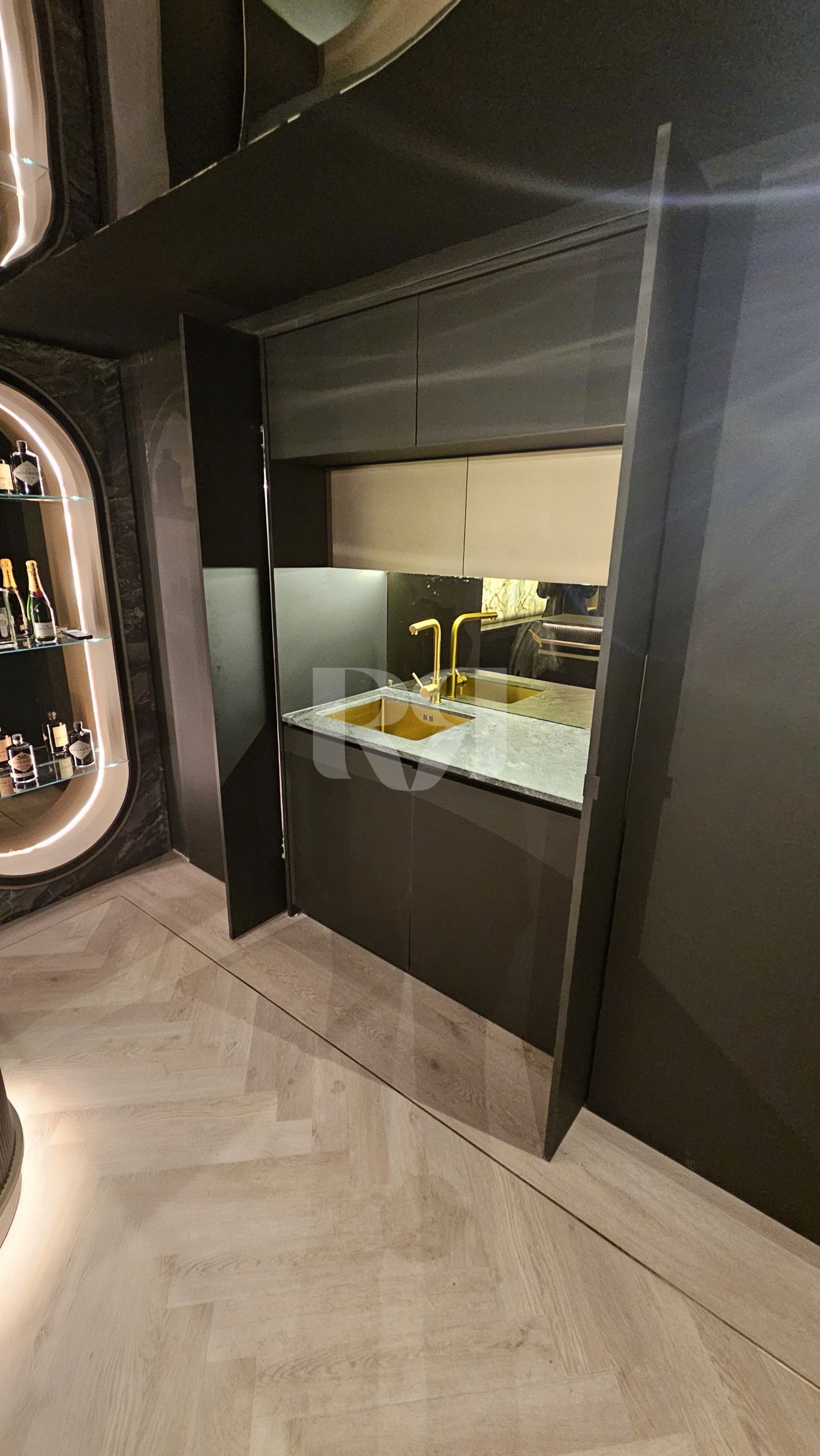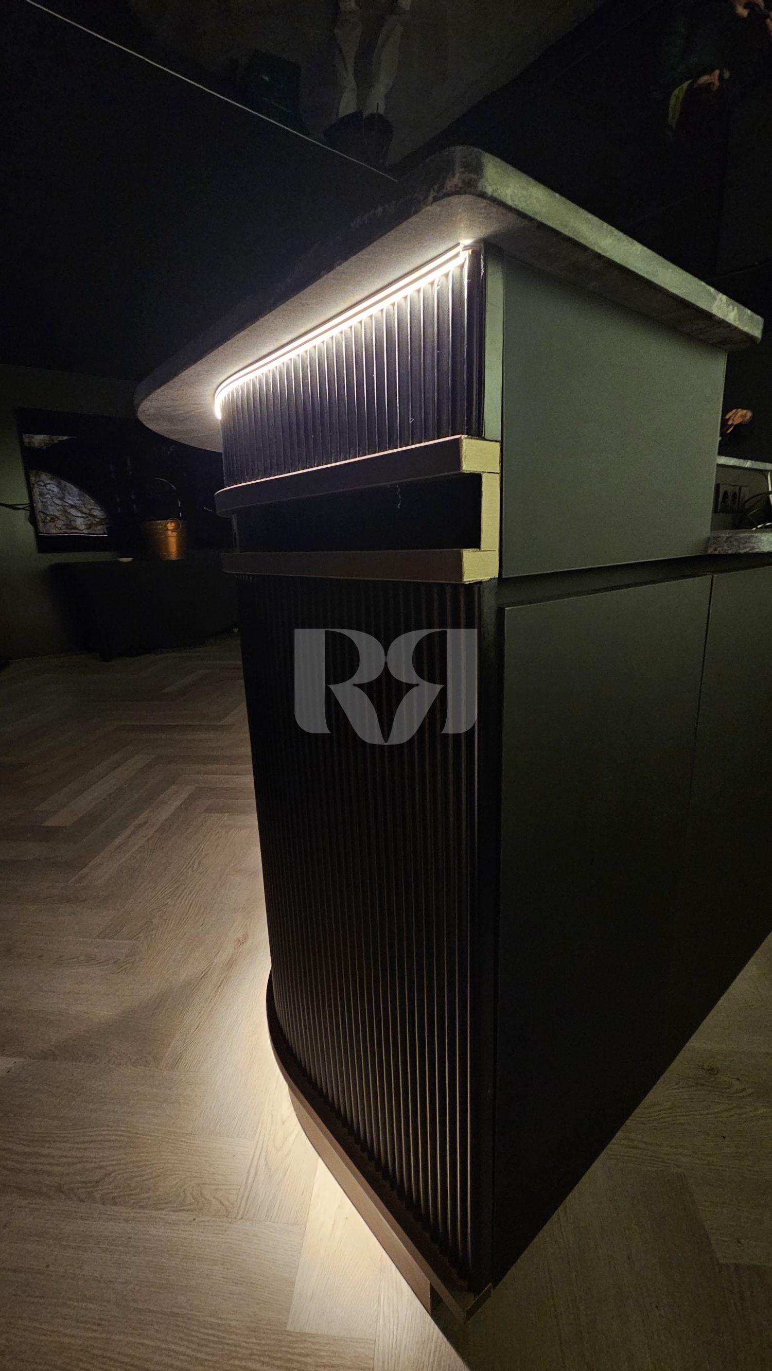 el pub privado, diseñado y ejecutado con un alto nivel de precisión y coherencia estética.