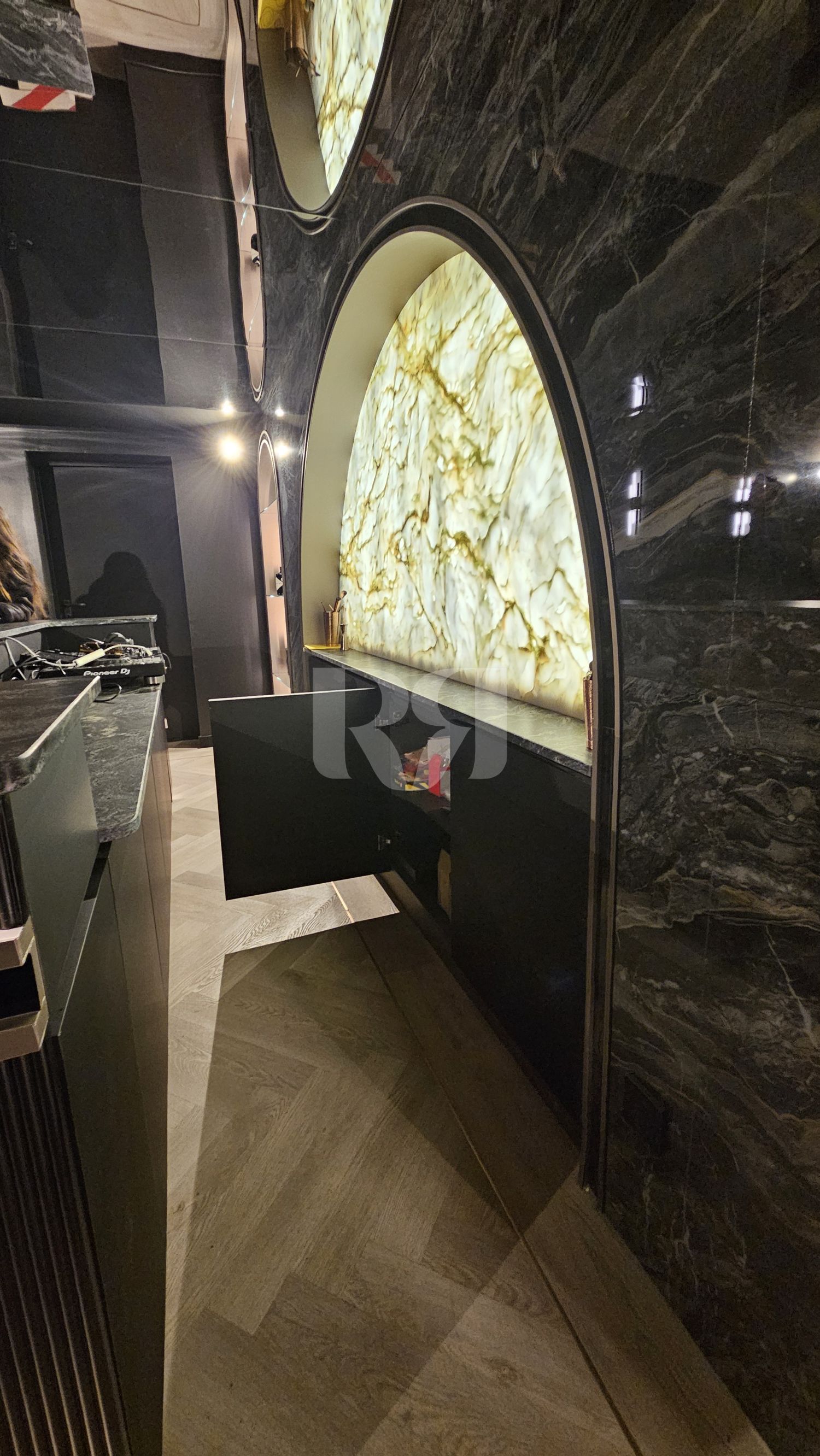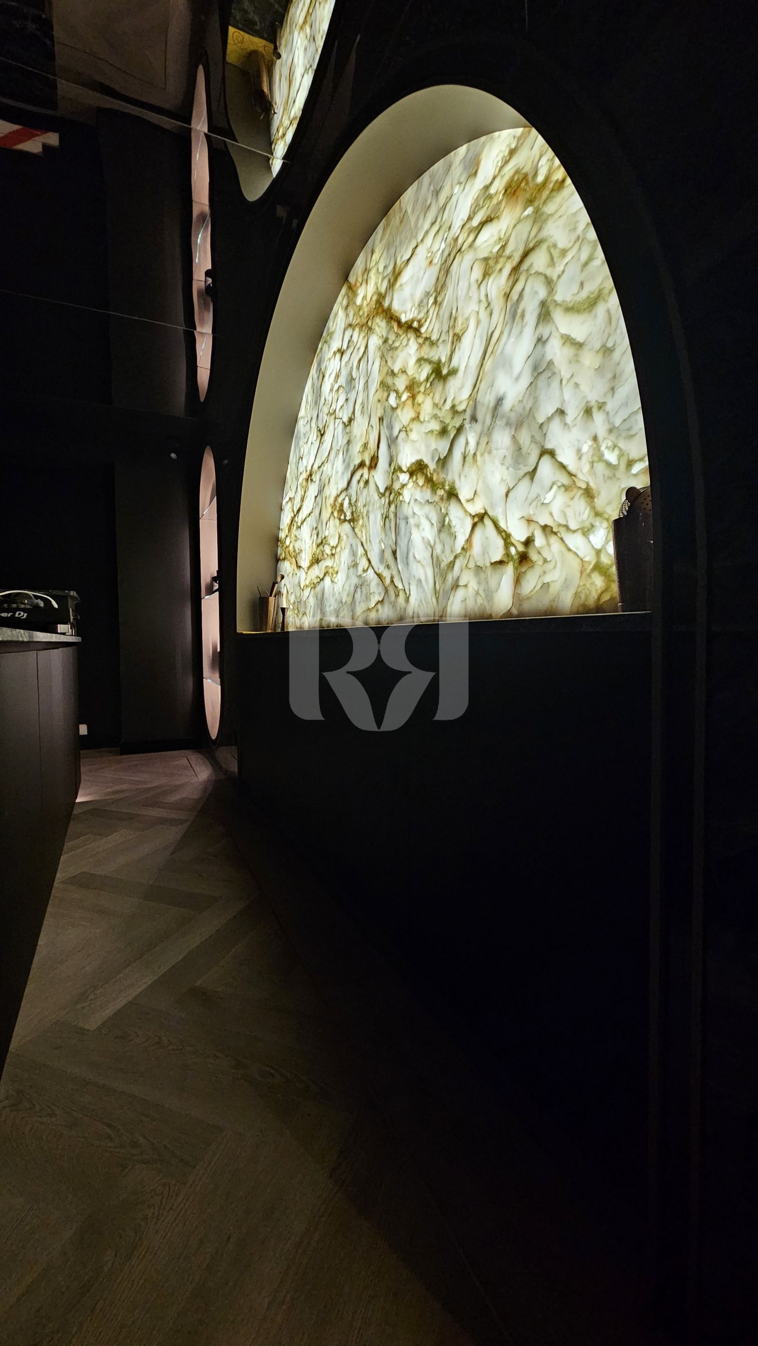 ónix retroiluminado, integrado dentro de un