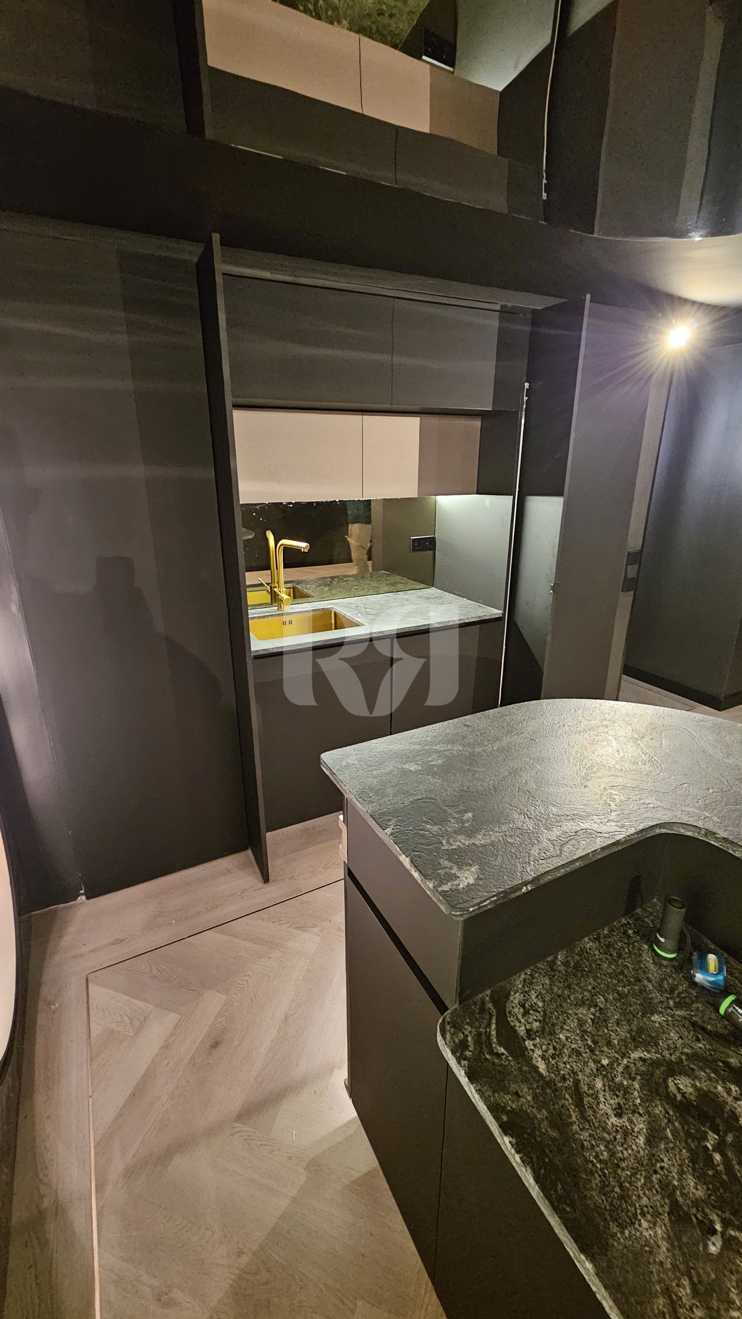 materiales de alta calidad, acabados oscuros, integración de metal, iluminación técnica y soluciones funcionales personalizadas.