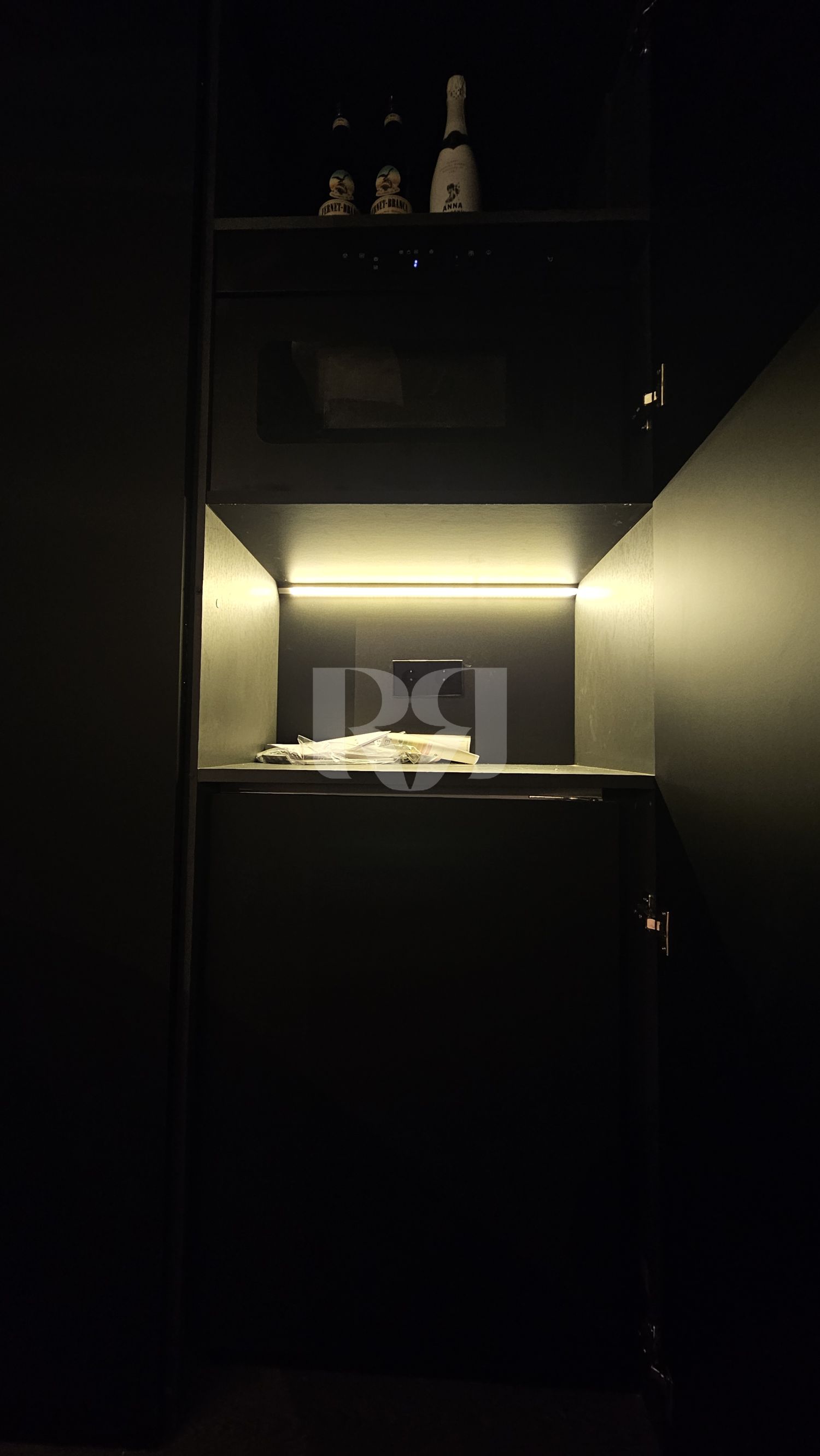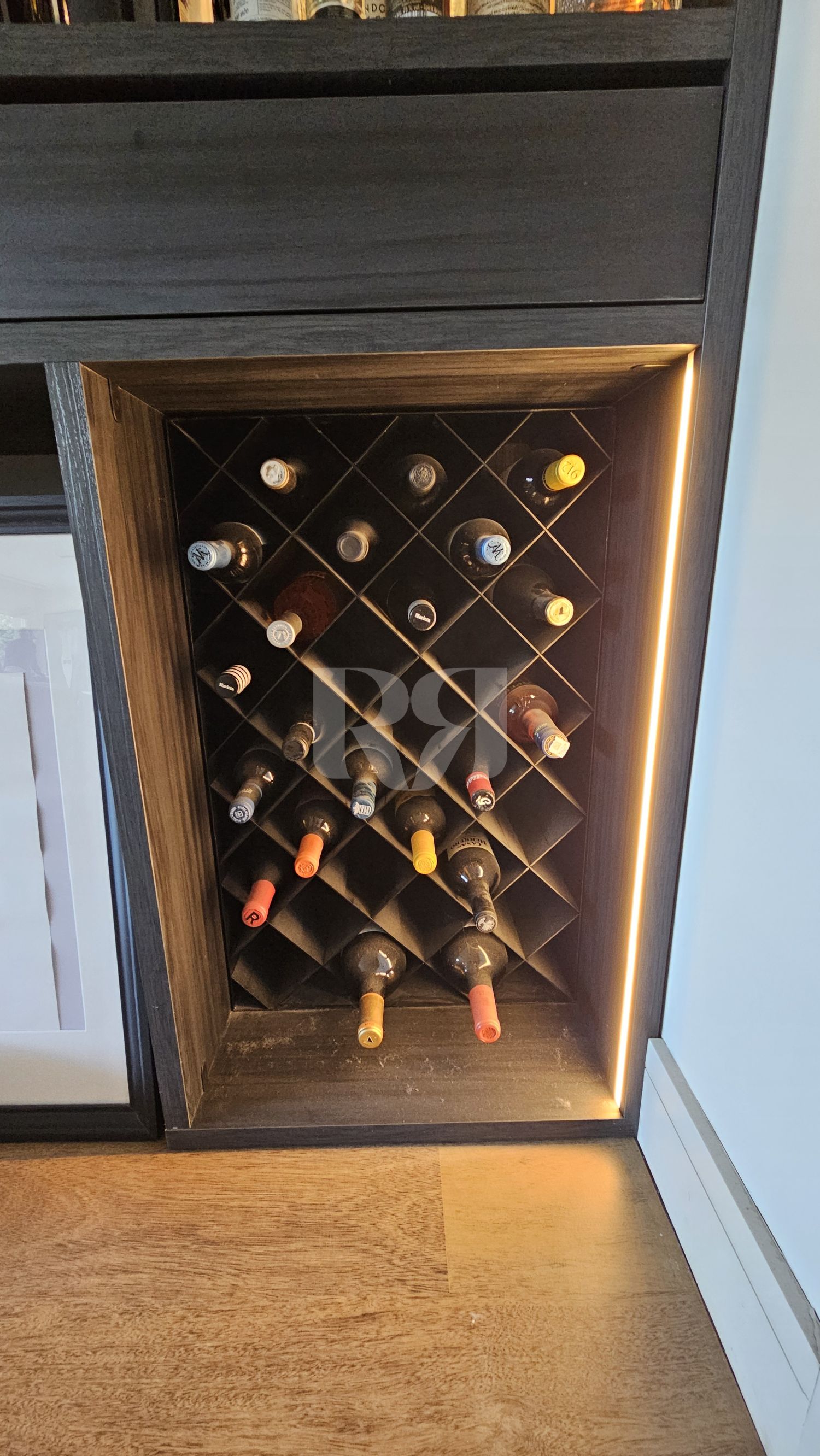 elementos metálicos para botelleros y zonas de chimenea, combinados con