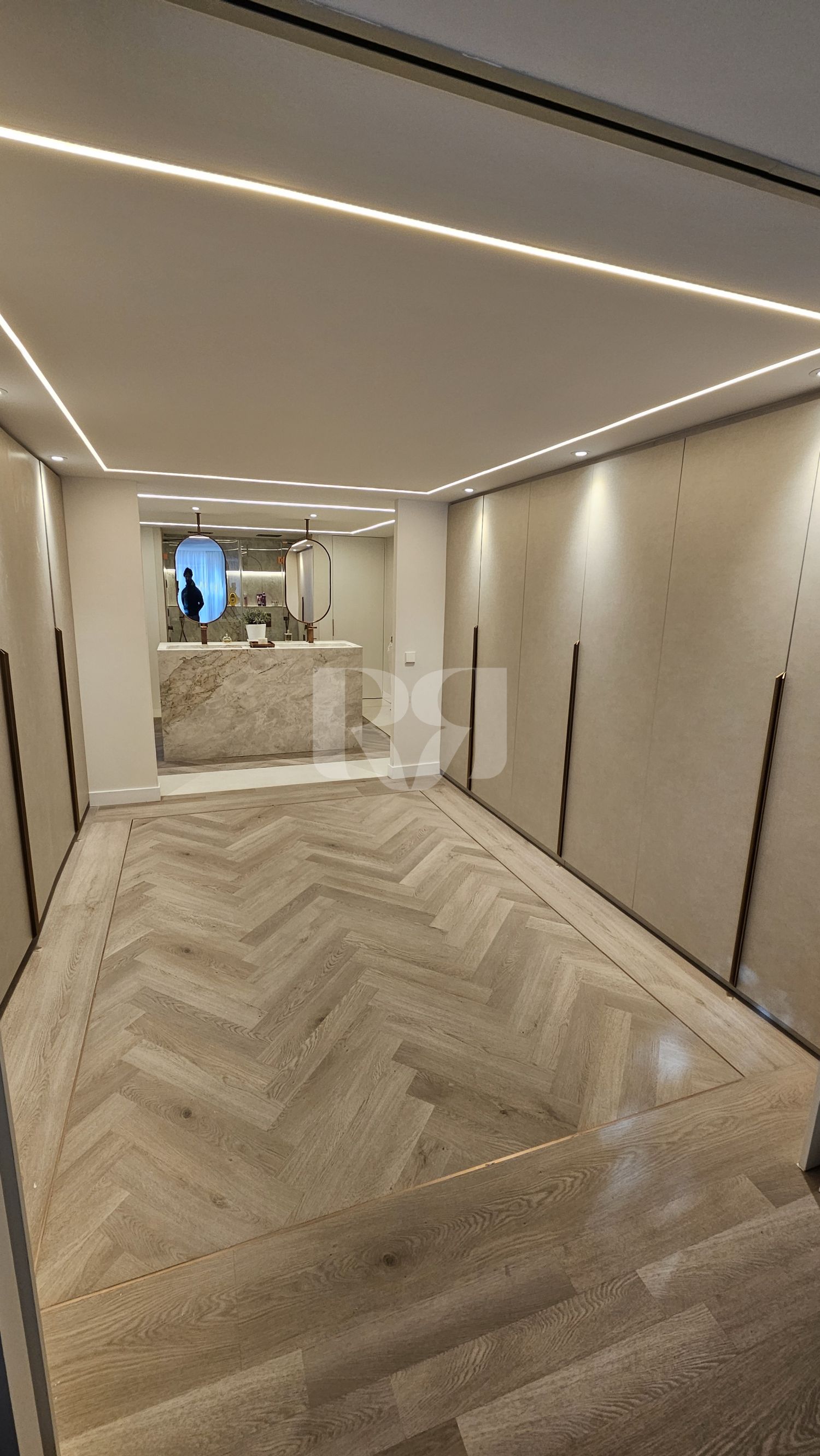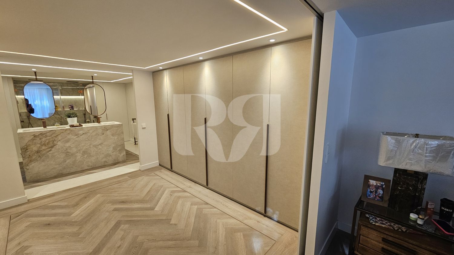 zona de vestidor cerrado, donde se optó por un enfoque más sobrio y táctil: