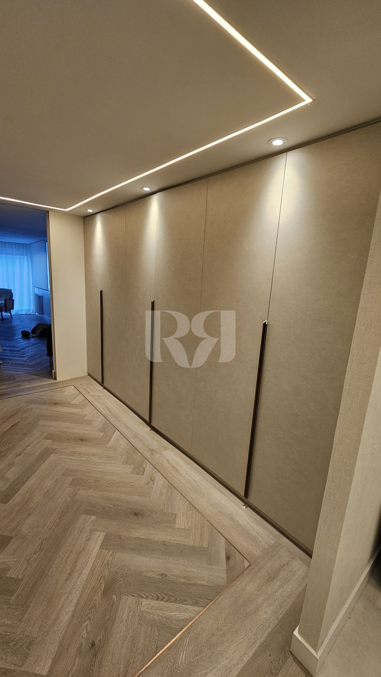 Vestidor cerrado con acabados textiles