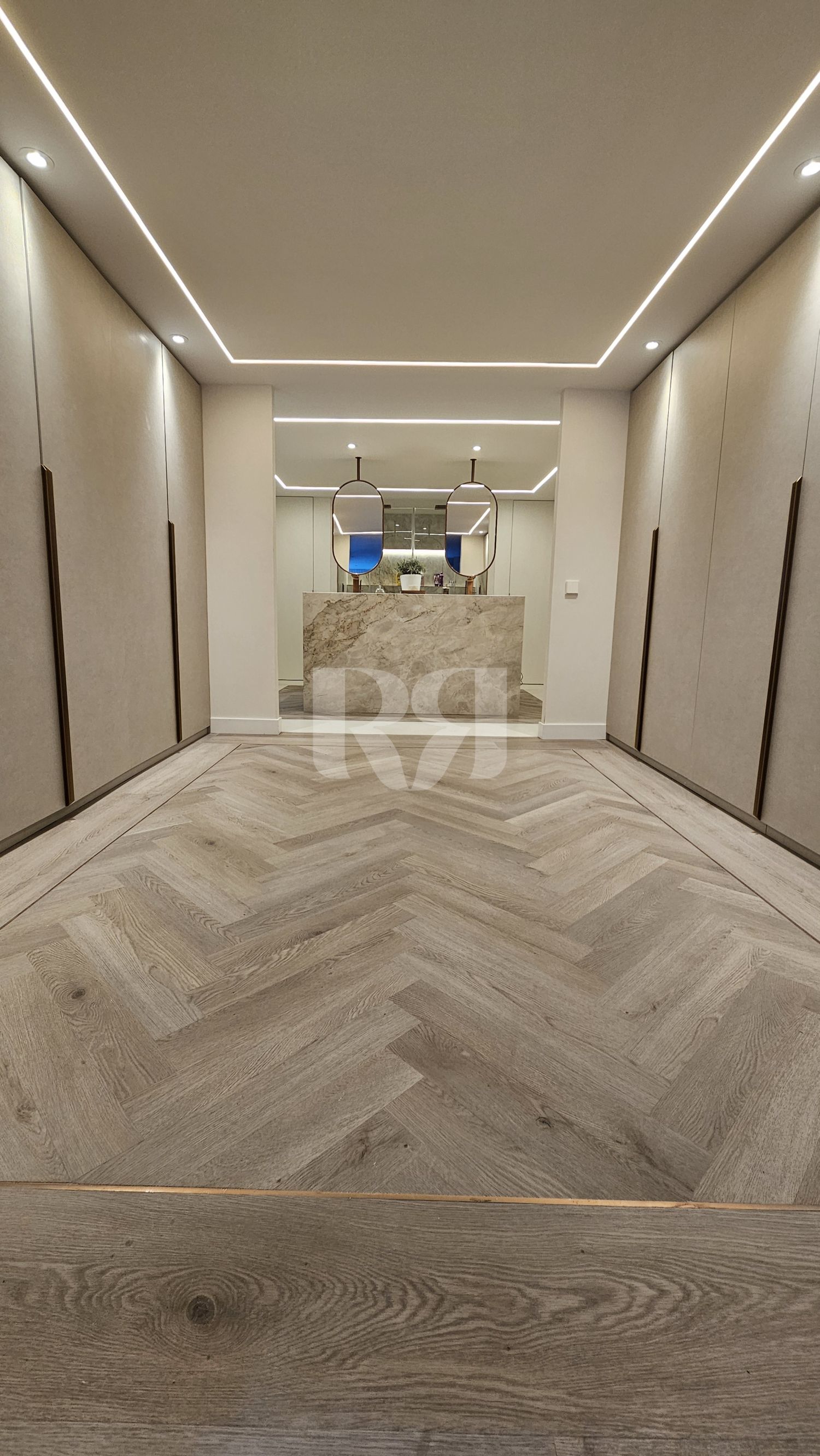 Traseras de espejo, que amplían visualmente el espacio, aumentan la luminosidad y refuerzan la sensación de amplitud del salón.